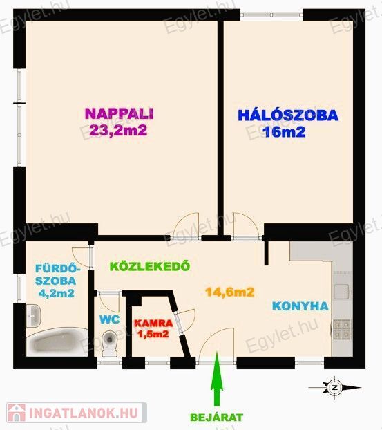 fürdőszoba (káddal felszerelt, 4,2m2)