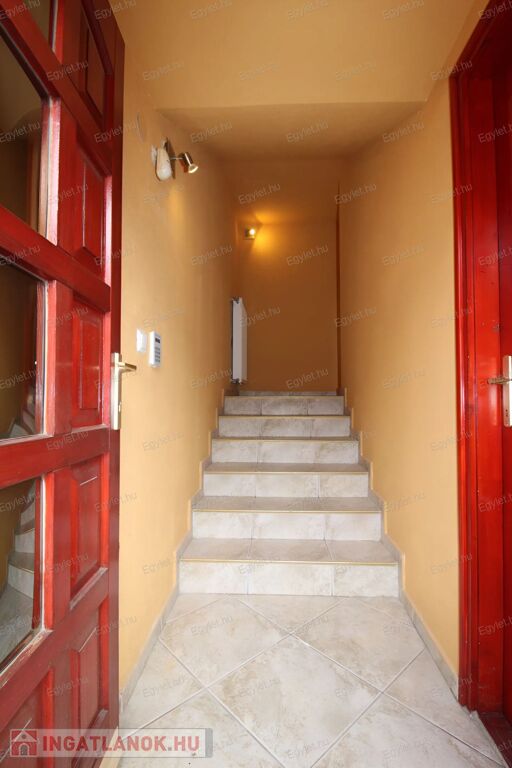 Zárt lépcsőház vezet fel az emeletre, ahol az előtérből nyílik az összes helyiség.